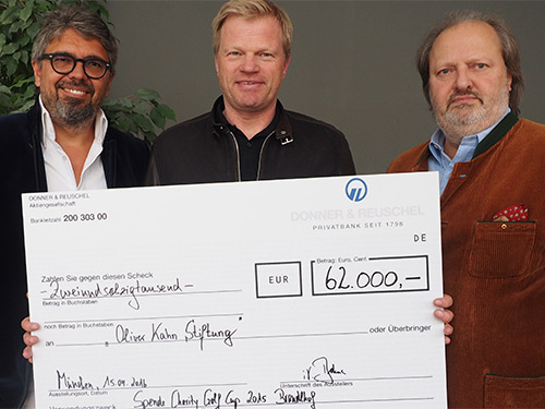 Scheckübergabe 2015 an die Oliver Kahn Stiftung, Norbert Pokorny, Oliver Kahn, Vize-Präsident Michael Behrens.